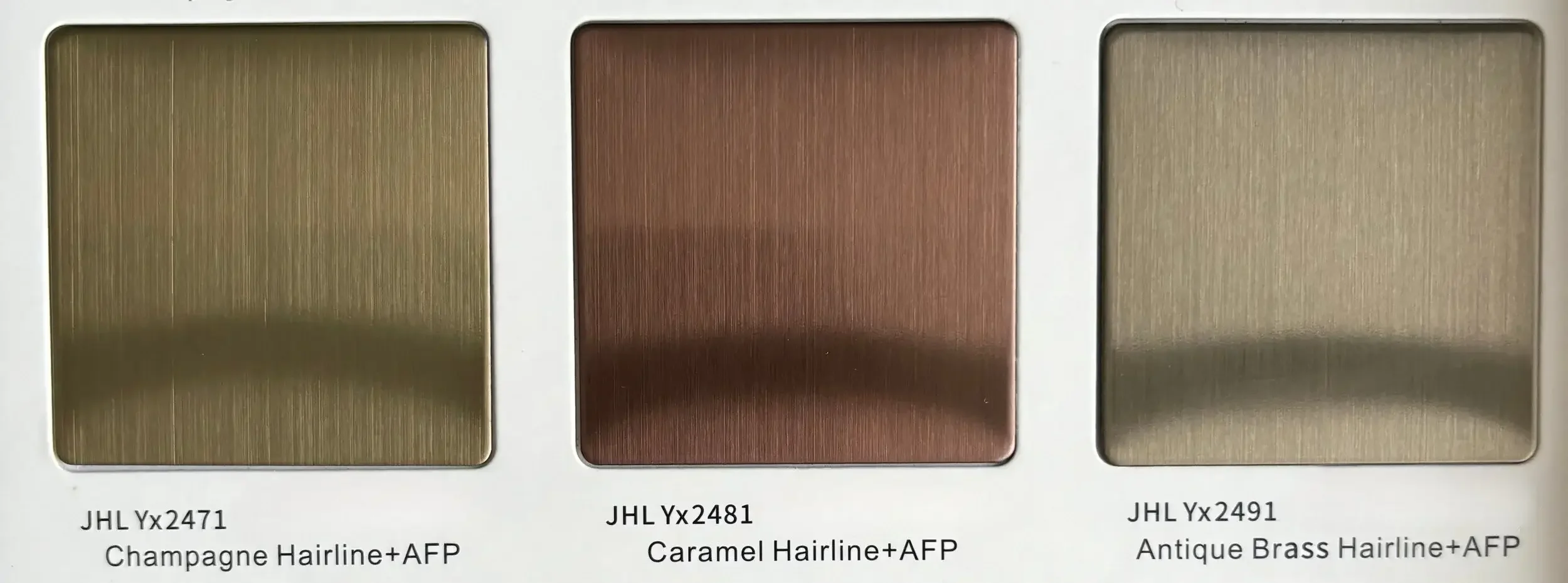 Finishes: Hairline, Satin, Mirror, Bead Blasted, Vibration, Etching